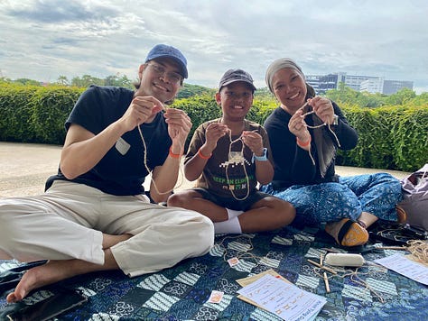 These past few months, we’ve been mentoring a group of students from Singapore University of Social Sciences (SUSS) to organise an Amazing Race-style programme for kids at West Coast Park, in support of Orang Laut SG. The Sea Trail began with an introduction to Singapore’s Indigenous communities and identity as a nation of islands. Activities included knot-tying (a foundational skill for a life at sea), boat-building with coconut husks (a craft taught to us by Uncle Shukor, who used to race these as a child on Pulau Tekong), a treasure hunt around City Sprouts (our venue partner), and finally, a storytelling session by our incredible friend Hafiz Rashid, who captivated the energetic kids with a tale from the Riau Islands. Kudos to the SUSS team for their hard work and enthusiasm in learning and sharing the narratives of the Orang Laut, and a huge thank you to all the families who took their Saturday afternoon to join us! Till next time :)